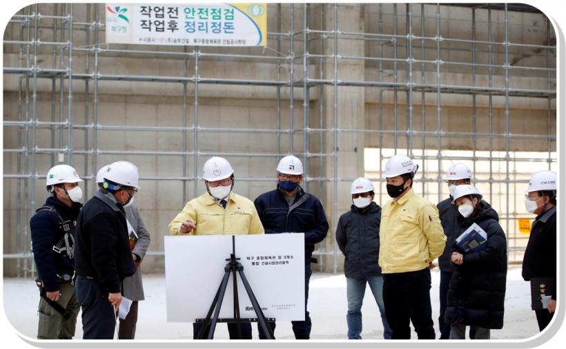 ¾Õ¼ ¹®ÀÎ ºÏ±¸Ã»ÀåÀº Áö³ 13Àϰú 14ÀÏ ºÏ±¸ ³» ½ÅÃà ÁßÀÎ ¿ÀÇǽºÅÚ, °øµ¿ÁÖÅÃ, »ýȰSOC»ç¾÷ ÇöÀå µî ÃÑ 6°÷À» ¹æ¹®ÇØ °ø»ç ÁøÇà »óȲ°ú ¾ÈÀü±âÁØ Áؼö µîÀ» »ìÆñ´Ù.