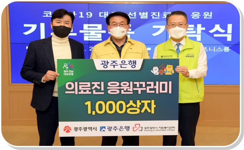 [°ø°£´º½º = ±è¼ö±Ù±âÀÚ] ±¤ÁÖ±¤¿ª½Ã´Â 25ÀÏ ½Ãû ºñÁî´Ï½º·ë¿¡¼ ±¤ÁÖÀºÇàÀ¸·ÎºÎÅÍ Äڷγª19 ÀÀ¿ø²Ù·¯¹Ì 1000°³¸¦ Àü´Þ¹Þ¾Ò´Ù.