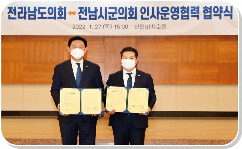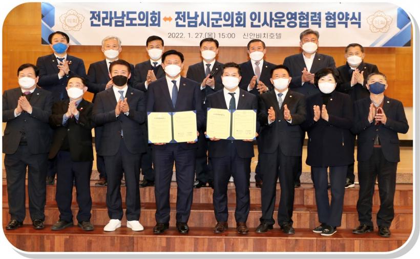 [°ø°£´º½º = ±è¼ö±Ù±âÀÚ] Àü³²µµÀÇȸ´Â 27ÀÏ ¸ñÆ÷ ½Å¾ÈºñġȣÅÚ¿¡¼ Áö¹æÀÚÄ¡¹ý ÀüºÎ°³Á¤¹ý·üÀÌ ½ÃÇàµÊ('22. 1. 13.)¿¡ µû¶ó Àü³²½Ã±ºÀÇȸÀÇÀåÇùÀÇȸ¿Í ¿øÈ°ÇÑ Àλç¿î¿µÀ» À§ÇÑ ¾÷¹«Çù¾àÀ» ü°áÇß´Ù.