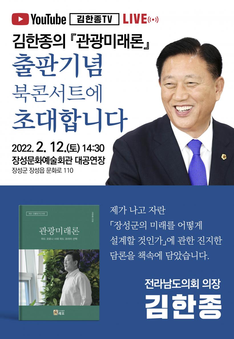 [°ø°£´º½º = ±è¼ö±Ù±âÀÚ] ±èÇÑÁ¾ Àü¶ó³²µµÀÇȸ ÀÇÀåÀÌ ¿À´Â 12ÀÏ(Åä) ¿ÀÈÄ 2½Ã 30ºÐ À强¹®È¿¹¼úȸ°ü ´ë°ø¿¬Àå¿¡¼ ÀÚ½ÅÀÇ Àú¼¡¸°ü±¤¹Ì·¡·Ð¡¹ÃâÆÇ±â³ä ºÏÄܼƮ¸¦ °³ÃÖÇÑ´Ù.