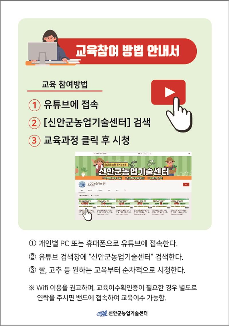 À¯Æ©ºê ä³ÎÀÎ ¡°½Å¾È±º³ó¾÷±â¼ú¼¾ÅÍ¡± ¿Â¶óÀÎ Ç÷§ÆûÀ» ±¸ÃàÇÏ¿© ³ó¾÷ÀεéÀÌ °³º° Á¢¼ÓÇÏ¿© ±³À°À» ¹ÞÀ» ¼ö ÀÖµµ·Ï ÇÒ °èȹÀÌ´Ù.
