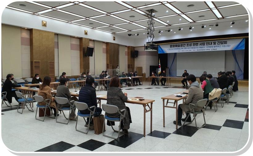 °ü·Ã ´Üü¿Í ¿¹¼úÀÎ 30¿©¸íÀÌ Âü¼®ÇÑ °¡¿îµ¥ ¿¸° °£´ãȸ¿¡¼´Â 2022³â ¹®È¿¹¼ú±³À°Àü¿ë½Ã¼³(²Þ²Ù´Â ¿¹¼úÅÍ) Áö¿ø»ç¾÷°ú Áö¿ª¹®È Ȱ·ÂÃËÁø Áö¿ø»ç¾÷ °ø¸ðÃßÁø¿¡ ´ëÇØ Ȱ¹ßÇÑ ³íÀǰ¡ Àü°³µÆ´Ù.