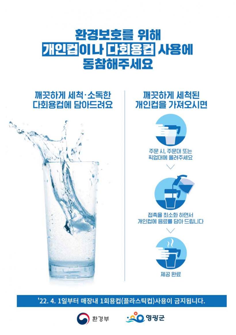 [°ø°£´º½º = ±è¼ö±Ù±âÀÚ] ¿µ±¤±ºÀº ½Ä´ç°ú Ä«Æä(½ÄǰÁ¢°´¾÷¼Ò)µî ¸ÅÀå ³» 1ȸ¿ëǰ »ç¿ëÀ» ȯ°æºÎ °í½Ã °³Á¤(2022. 1. 6.)¿¡ µû¶ó ¿À´Â 4¿ùºÎÅÍ Àü¸é ±ÝÁöÇÑ´Ù°í ¹àÇû´Ù.