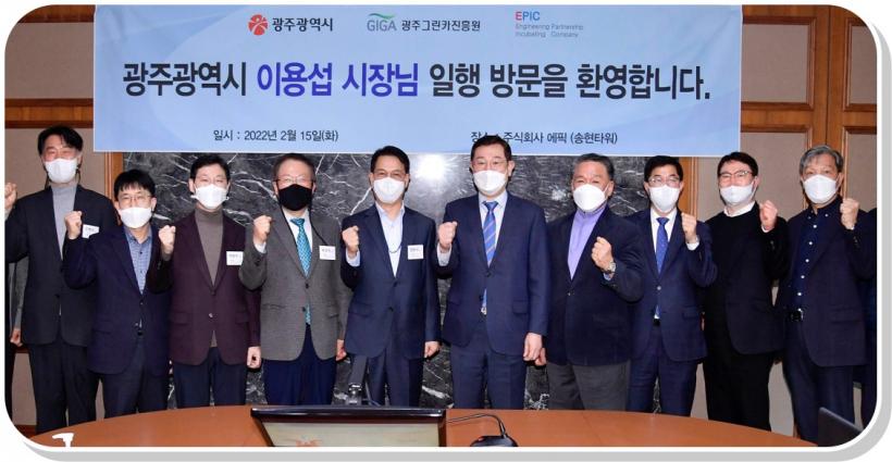 | À̿뼷 ±¤ÁÖ±¤¿ª½ÃÀåÀÌ 15ÀÏ ¿ÀÈÄ °æ±âµµ ºÐ´ç±¸ ¢ß¿¡ÇÈ(EPIC) º»»ç¸¦ ¹æ¹®ÇØ ÃÖ¼º½Ä ´ëÇ¥ÀÌ»ç¿Í ¸é´ãÀ» °®°í '±¤ÁÖÇü ÀÏÀÚ¸® ½ÃÁð2' ´Þ¼ºÀ» À§ÇÑ ½ÇÇà¹æ¾È µîÀ» ³íÀÇÇϰí ÀÖ´Ù. |