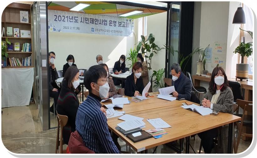 18ÀÏ ½Ã±³À°Ã»¿¡ µû¸£¸é À̹ø º¸°íȸ´Â 2021³â ½Ã¹ÎÁ¦¾È»ç¾÷ÀÇ ³»¿ë°ú °á°ú¸¦ °øÀ¯ÇÏ°í ½Ã¹ÎÂü¿©¿¹»êÁ¦ ¹ßÀü ¹æÇâÀ» ÇÔ²² ³íÀÇÇÏ´Â ¼ÒÅëÀÇ ÀÚ¸®¸¦ ¸¶·ÃÇϱâ À§ÇØ °³ÃֵƴÙ. ½Ã¹ÎÂü¿©¿¹»êÀ§¿øÈ¸¿Í »ç¾÷À» ÃßÁøÇÑ Çб³ °ü°èÀÚµéÀÌ Âü¿©Çß´Ù.