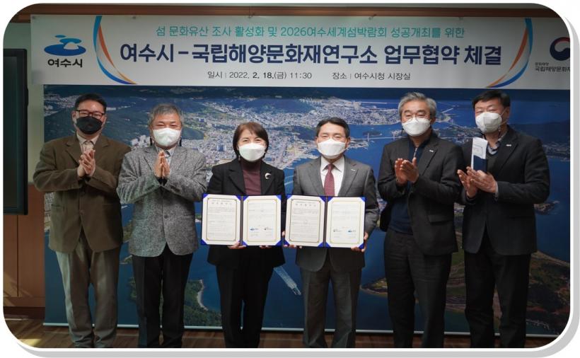 [°ø°£´º½º = ±è´ë¿µ±âÀÚ] ¹®ÈÀçû ±¹¸³Çؾ繮ÈÀ翬±¸¼Ò(¼ÒÀå ±è¿¬¼ö)¿Í ¿©¼ö½Ã(½ÃÀå ±Ç¿ÀºÀ)´Â 18ÀÏ ¿ÀÀü 11½Ã 30ºÐ ¿©¼ö½Ãû(Àü³² ¿©¼ö)¿¡¼ ¼¶ ¹®ÈÀ¯»ê Á¶»ç¿¬±¸ ¹× ¡®2026 ¿©¼ö¼¼°è¼¶¹Ú¶÷ȸ¡¯ Áö¿øÀ» À§ÇÑ ¾÷¹«Çù¾à(MOU)À» ü°áÇÑ´Ù.