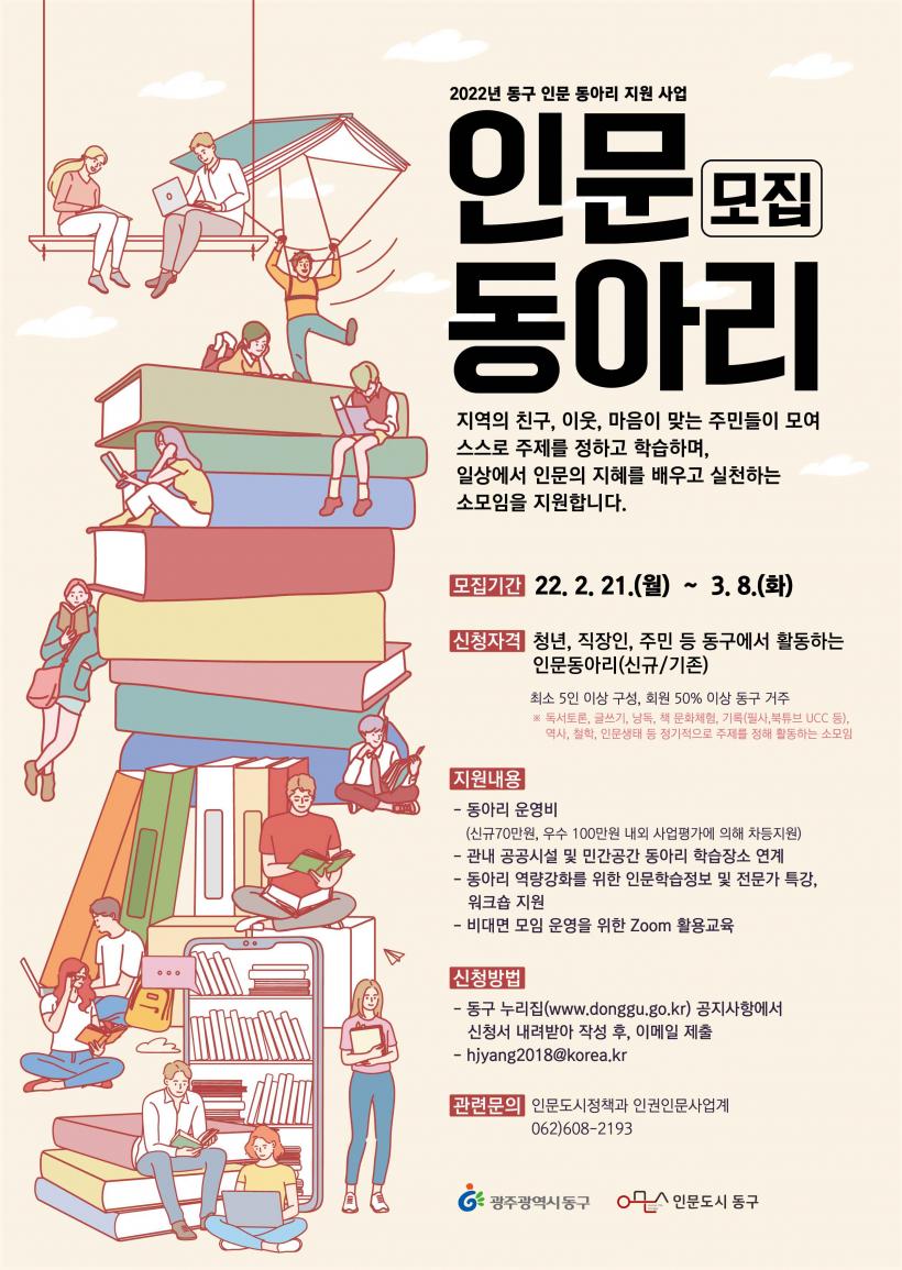[°ø°£´º½º = ±è´ë¿µ±âÀÚ] ±¤ÁÖ µ¿±¸(±¸Ã»Àå ÀÓÅÃ)´Â ÁÖ¹ÎÀÇ Àι®¿ª·® Á¦°í ¹× Áö¿ªÀÇ Àι®Á¤½ÅÀ» È®»êÇϱâ À§ÇÑ ¡®2022 Àι®µ¿¾Æ¸® Áö¿ø»ç¾÷¡¯¿¡ Âü¿©ÇÒ µ¿¾Æ¸®¸¦ ¸ðÁýÇÑ´Ù°í ¹àÇû´Ù.