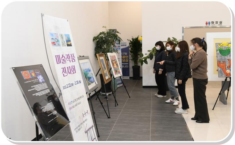 [°ø°£´º½º = ±è¼ö±Ù±âÀÚ] ±¤ÁÖ ³²±¸(±¸Ã»Àå ±èº´³»)´Â Àå¾ÖÀÎ ¹®È¿¹¼ú Ȱµ¿ Ȱ¼ºÈ¸¦ À§ÇØ Áö³ ÇÑÇØ °ü³» Àå¾ÖÀεéÀÌ ±×¸° ¹Ì¼úÀÛǰ 64Á¡À» ±¸¸ÅÇØ Ưº° Àü½Ãȸ¸¦ °®´Â´Ù. Àå¾Ö ¿¹¼úÀÎÀÇ »ç±â ÁøÀÛ°ú ÀÚ±à½ÉÀ» ³ôÀ̱â À§Çؼ´Ù.