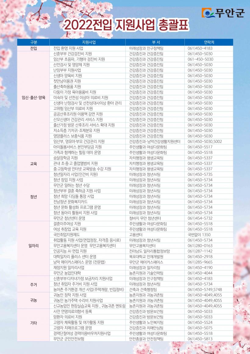 û³âÁö¿ø »ç¾÷À¸·Î ¡ã¹«¾È °ÅÁÖ ¸¸ 19¼¼~39¼¼ û³â ´ë»ó ÀÏÀÚ¸®¡¤Ã¢¾÷ Áö¿ø ¡ãÀÏÇϴ û³â ¼ö´ç Áö±Þ ¡ãû³âºÎºÎ °áÈ¥ ÃàÇÏ±Ý Áö¿ø ¡ãû³â Èñ¸Á µðµõµ¹ ÅëÀå ¡ãÀü³² û³â ¹®Èº¹ÁöÄ«µå ¡ãû³â ¹®È Ȱ¼ºÈ ÇÁ·Î±×·¥ ¡ãû³â µ¿¾Æ¸® Ȱµ¿ºñ µî 9°³ »ç¾÷À» ÃßÁøÇÑ´Ù.