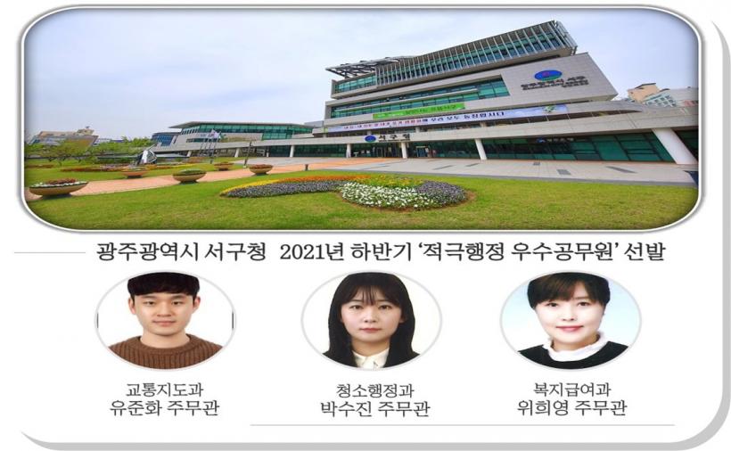 [°ø°£´º½º = ±è¼ö±Ù±âÀÚ] ±¤ÁÖ ¼±¸(±¸Ã»Àå ¼´ë¼®)°¡ Áö³ 21ÀÏ Ã¢ÀǼº¡¤Àü¹®¼ºÀ» ¹ÙÅÁÀ¸·Î ÁÖ¹ÎÀÌ Ã¼°¨ÇÒ ¼ö ÀÖµµ·Ï Àû±ØÀûÀ¸·Î ¾÷¹«¸¦ ÃßÁøÇØ ¼º°ú¸¦ ³½ °ø¹«¿ø 3¸íÀ» 2021³â ÇϹݱâ Àû±ØÇàÁ¤ ¿ì¼ö°ø¹«¿øÀ¸·Î ¼±¹ßÇß´Ù°í ¹àÇû´Ù.