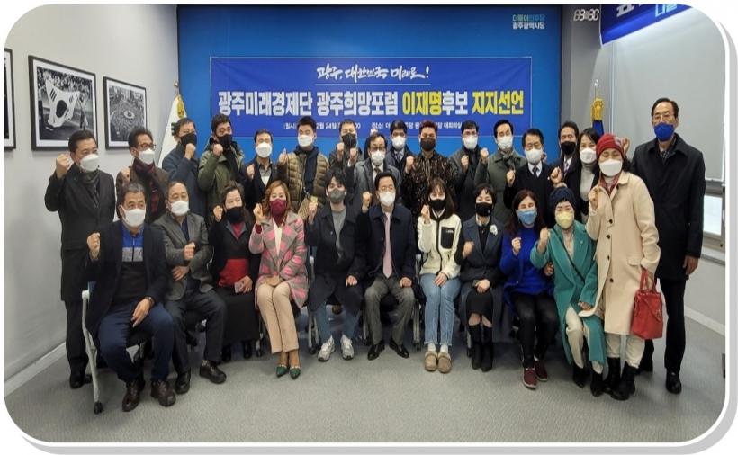 [°ø°£´º½º = ±è¼ö±Ù±âÀÚ] ±¤Á̷ֹ¡°æÁ¦´Ü°ú ±¤ÁÖÈñ¸ÁÆ÷·³Àº 24ÀÏ ¿ÀÈÄ ¼±¸ »ó¹«Áö±¸ ¹ÎÁÖ´ç ±¤Áֽô翡¼ ±âÀÚȸ°ßÀ» ¿°í ´Üü ¼Ò¼Ó ȸ¿ø 5õ¿©¸íÀº ¡°´õ Å©°í ´õ °ÇÑ ±¤Áֽô븦 ¿°í »õ·Î¿î ¹Ì·¡ 100³âÀÇ ±âÃʸ¦ ´ÙÁú ÀÌÀç¸í Èĺ¸ ÁöÁö¸¦ ¼±¾ðÇÑ´Ù¡±°í ¹àÇû´Ù.