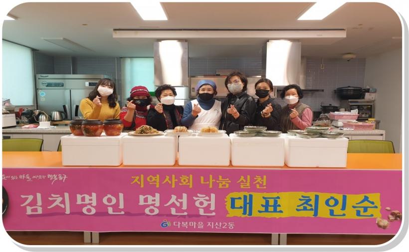 ÃÖÀμø ¸í¼±Çå ´ëÇ¥´Â º¸±èÄ¡(¹èÃßÀÙÀ¸·Î ¼ÓÀ» ½Ñ ±èÄ¡)·Î 2001³â ´ëÅë·É»óÀ» ¼ö»óÇÏ¸ç ¡®±èÄ¡¸íÀΡ¯ Īȣ¸¦ ¹Þ¾Ò´Ù. 2007³âºÎÅÍ´Â ±èÄ¡¿Í ÇÑÁ¤½ÄÀÇ ¼¼°èȸ¦ À§ÇØ Èû½á¿ÔÀ¸¸ç »çȸ°øÇåȰµ¿µµ Ȱ¹ßÈ÷ ÇØ¿À°í ÀÖ´Ù. À̹ø ±èÄ¡ ±âºÎµµ ¾î·Á¿î ÀÌ¿ôÀ» µ½°í Áö¿ª»çȸ ³» ±âºÎ¹®È¸¦ È®»ê½Ã۰íÀÚ ÇÏ´Â ¸¶À½¿¡¼ ¸¶·ÃµÆ´Ù.