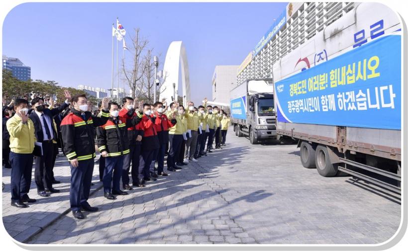 [°ø°£´º½º = ±è¼ö±Ù±âÀÚ] ±¤ÁÖ±¤¿ª½Ã´Â °æ»óºÏµµ ¿ïÁø±º°ú °¿øµµ »ïô½Ã¿¡¼ ¹ß»ýÇÑ ´ë±Ô¸ð »êºÒ·Î °íÅëÀ» °Þ°í ÀÖ´Â ÁֹεéÀ» À§ÇÑ ±ä±Þ ±¸È£¹°Ç°À» Áö¿øÇÏ¸ç ±¤ÁÖÀÇ ¿ÂÁ¤À» Àü´ÞÇß´Ù.