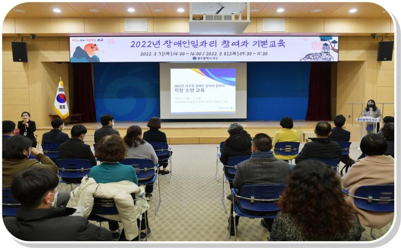 [°ø°£´º½º = ±è¼ö±Ù±âÀÚ] ±¤ÁÖ ¼±¸(±¸Ã»Àå ¼´ë¼®)°¡ Áö³ 7Àϰú 8ÀÏ ¾çÀϰ£¿¡ °ÉÃÄ ¡®2022³â Àå¾ÖÀÎÀÏÀÚ¸® »ç¾÷ Âü°¡ÀÚ ±âº»±³À°¡¯À» ÀÌÆ²°£ ½Ç½ÃÇß´Ù°í ¹àÇû´Ù.