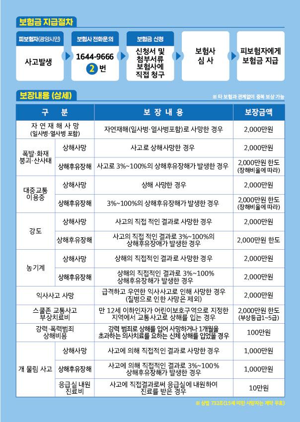 ½Ã¹Î¾ÈÀüº¸ÇèÀº ±¤¾ç½Ã¿¡ Áֹεî·ÏÀ» µÎ°í ÀÖ´Â ¸ðµç ½Ã¹ÎÀÌ ´ë»óÀ̸ç, º°µµÀÇ °¡ÀÔÀýÂ÷¿Í º¸Çè·á ¾øÀÌ ±¤¾ç½Ã¹ÎÀÌ¸é ´©±¸³ª ÇýÅÃÀ» ¹ÞÀ» ¼ö ÀÖ´Ù.
