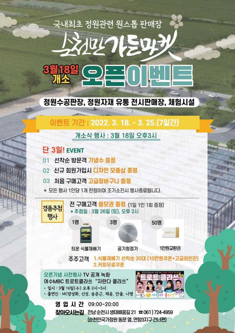[°ø°£´º½º = ±è´ë¿µ±âÀÚ] ³ó¾÷ȸ»ç¹ýÀÎ ¼øÃµ¸¸°¡µç¸¶ÄÏ ÁÖ½Äȸ»ç(´ëÇ¥ÀÌ»ç ä½Â¿¬)´Â ±¹³» ÃÖÃÊ·Î Á¤¿ø°ü·Ã ¿ø½ºÅé ÆÇ¸ÅÀåÀ¸·Î ´ÜÀåÇÏ¿© ¿À´Â 3¿ù 18ÀÏ Á¤½Ä °³ÀåÇÑ´Ù.