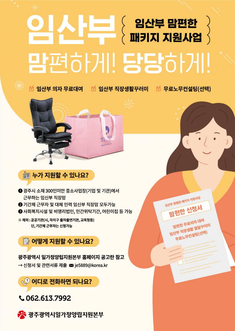 ¡®ÀÓ»êºÎ ¸¾ÆíÇÑ ÆÐŰÁö¡¯´Â °ü³» ¼ÒÀç 300ÀÎ ¹Ì¸¸ Áß¼Ò»ç¾÷Àå¿¡¼ ±Ù¹«ÇÏ´Â Àӽźο¡°Ô ÀӽźΠüÇü¿¡ ¸ÂÃç Á¢ÀÌÁ¶ÀýÀÌ °¡´ÉÇÑ ÀӽźΠÀü¿ëÀÇÀÚ ¹«·á ´ë¿©, ÀӽźÎÀÇ Á÷Àå»ýȰ¿¡ ÇÊ¿äÇÑ ÀӽźΠÁ÷Àå»ýȰ²Ù·¯¹Ì Á¦°ø, ±Ù¹«È¯°æ °³¼±À» À§ÇÑ ¸ð¡¤ºÎ¼º ³ë¹«ÄÁ¼³ÆÃ µî 3°³ ºÐ¾ß¸¦ Á¾ÇÕ Áö¿øÇÏ´Â »ç¾÷ÀÌ´Ù.