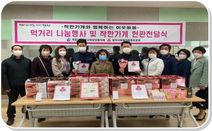 [°ø°£´º½º = ±è´ë¿µ±âÀÚ] ±¤ÁÖ µ¿±¸(±¸Ã»Àå ÀÓÅÃ) °è¸²2µ¿ Áö¿ª»çȸº¸ÀåÇùÀÇü(À§¿øÀå ¹Úº´¾Ö¡¤ÀÌÇÏ Áö»çÇù)´Â Áö³ 15ÀÏ ÂøÇѰ¡°Ô 5°³¼Ò¿¡ ´ëÇÑ ÇöÆÇ Àü´Þ½ÄÀ» °®°í °ü³» µ¹º½ ÀÌ¿ô 60¼¼´ë¿¡ ÂøÇѰ¡°Ô¿¡¼ ÆÇ¸ÅÇÏ´Â ¸Ô°Å¸® ¼¼Æ®(3¸¸ ¿ø »ó´ç)¸¦ Àü´ÞÇß´Ù°í ¹àÇû´Ù.
