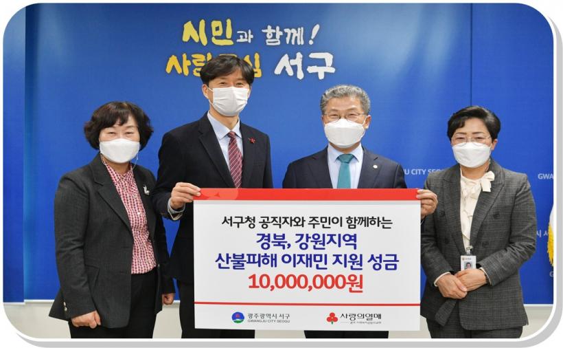 [°ø°£´º½º = ±è¼ö±Ù±âÀÚ] ±¤ÁÖ ¼±¸(±¸Ã»Àå ¼´ë¼®)°¡ 17ÀÏ °æºÏ ¿ïÁø°ú °¿øµµ »ïô µî µ¿ÇØ¾È »êºÒ ÇÇÇØÁö¿ª ÀÌÀç¹ÎµéÀ» µ½±â À§ÇØ »çȸº¹Áö°øµ¿¸ð±Ýȸ¿¡ ¼º±Ý 1õ¸¸¿øÀ» Àü´ÞÇß´Ù°í ¹àÇû´Ù.