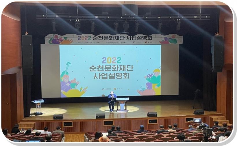 Áö³ÇØ¿¡ ÀÌ¾î µÎ ¹øÂ°·Î °³ÃÖÇÑ À̹ø »ç¾÷¼³¸íȸ´Â 2021³â ¼øÃµ¹®ÈÀç´ÜÀÌ Áö¿ª¿¹¼úÀΰú Áö¿ª¹ÎÀÌ ÇÔ²² ¸¸µé¾î³½ ¼º°ú ¹ßÇ¥¸¦ ½ÃÀÛÀ¸·Î, 2022³â ¼¼ºÎ»ç¾÷ ³»¿ë°ú ¿î¿µ¹æÇâ, ÃßÁøÀÏÁ¤, ½Åû¹æ¹ý µî¿¡ ´ëÇÑ ¼³¸í°ú ÇÔ²² ÁúÀÇÀÀ´äÀ» ÁøÇàÇß´Ù.