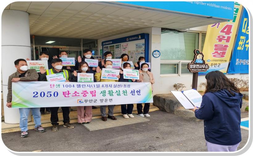 [°ø°£´º½º = ±è¿ëÁø±âÀÚ] ¹«¾È±º ¸Á¿î¸é(¸éÀå ±è±â¿µ)Àº ÃÖ±Ù ¸é»ç¹«¼Ò ¾Õ ±¤Àå¿¡¼ 2050 ź¼ÒÁ߸³ »çȸÀû °ø°¨´ë Çü¼º°ú ¸é¹Î ½Çõ È®»êÀ» µµ¸ðÇϱâ À§ÇØ Àü °øÁ÷ÀÚ°¡ Âü¿©ÇÑ °¡¿îµ¥ ź¼ÒÁ߸³ »ýȰ ½Çõ Ä·ÆäÀÎÀ» ½Ç½ÃÇß´Ù°í ¹àÇû´Ù.