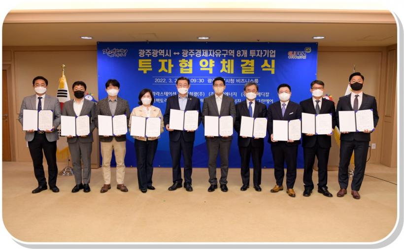 [°ø°£´º½º = ±è¼ö±Ù±âÀÚ] ±¤ÁÖ°æÁ¦ÀÚÀ¯±¸¿ªÃ»(ÀÌÇÏ ±¤ÁÖ°æÀÚû)Àº 25ÀÏ ½Ãû ºñÁî´Ï½º·ë¿¡¼ ±¹³» 8°³ ±â¾÷°ú ÅõÀÚ±Ý¾× 535¾ï¿ø, °í¿ëâÃâ 220¿© ¸í ±Ô¸ðÀÇ ÅõÀÚÇù¾à(MOU)À» ü°áÇß´Ù.