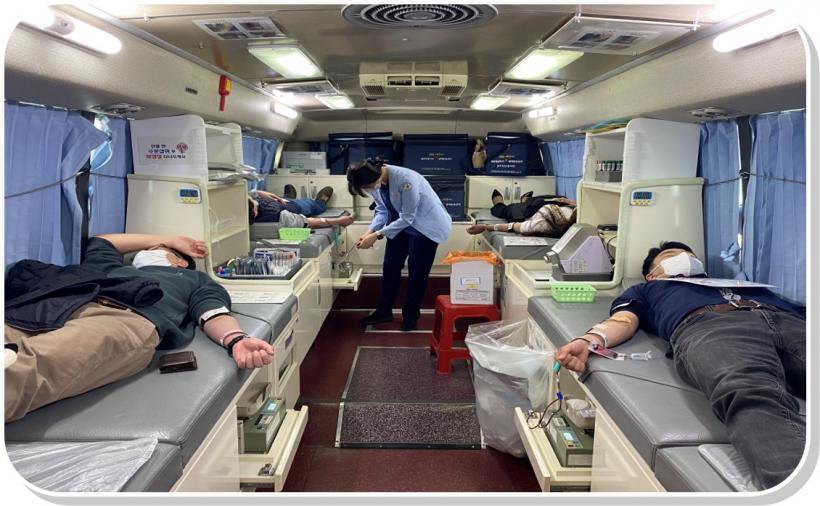 Äڷγª19 È®ÁøÀÚ°¡ ±ÞÁõÇÏ´Â »óȲ ¼Ó¿¡¼µµ Ç÷¾× ¼ö±Þ³ ÇØ°áÀ» À§ÇØ °ø´Ü ÀÓÁ÷¿ø ÃÑ 18¸íÀº ¿©¼ö½Ã Àå¾ÖÀα¹¹ÎüÀ°¼¾ÅÍ ¾Õ ÁÖÂ÷Àå¿¡¼ ÇåÇ÷ Çà»ç¿¡ Âü¿©ÇÏ¿© Äڷγª ±Øº¹ ÀÇÁö¸¦ ³ªÅ¸³Â´Ù.