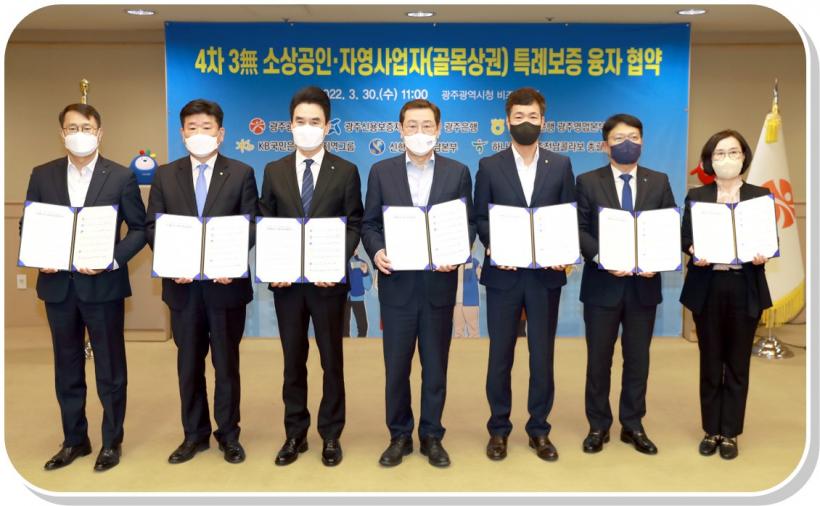 À̿뼷 ±¤ÁÖ±¤¿ª½ÃÀåÀÌ 30ÀÏ ¿ÀÀü ½Ãû 3Ãþ ºñÁî´Ï½º·ë¿¡¼ ¿¸° ¡®4Â÷ 3¹« ¼Ò»ó°øÀΡ¤ÀÚ¿µ»ç¾÷ÀÚ(°ñ¸ñ»ó±Ç) Ư·Êº¸Áõ À¶ÀÚ Çù¾à½Ä¡¯¿¡ Âü¼®ÇØ Çù¾à¼¿¡ ¼¸íÇÑ ÈÄ ±â³äÃÔ¿µÀ» Çϰí ÀÖ´Ù. ¿ÞÂʺÎÅÍ- ¾È±¤¿î ½ÅÇÑÀºÇà È£³²±Çº»ºÎÀå, Á¶Çö±â ±¤ÁÖÀºÇà ºÎÇàÀå, º¯Á¤¼· ±¤Áֽſ뺸ÁõÀç´Ü ÀÌ»çÀå, À̿뼷 ±¤ÁÖ±¤¿ª½ÃÀå, ±è¼®Âù NH³óÇùÀºÇà ±¤ÁÖ¿µ¾÷º»ºÎÀå, ¾çµ¿¿ø ÇϳªÀºÇà ±¤ÁÖÀü³²ÄÝ¶óº¸ ÃѰýº»ºÎÀå, ¹Ú±â·Ê ±¹¹ÎÀºÇà È£³²Áö¿ª±×·ì ±¤ÁÖÁö¿ª º»ºÎÀå
