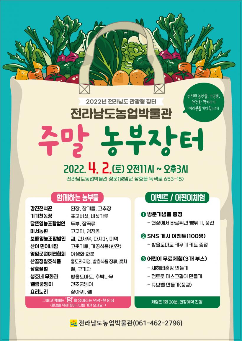 [°ø°£´º½º = ±è¼ö±Ù±âÀÚ] Àü¶ó³²µµ³ó¾÷¹Ú¹°°üÀÌ Áö¿ª ÁֹΰúÀÇ Ä£È ¹× °ü±¤°´ À¯Ä¡¸¦ À§ÇØ ÃßÁøÇÏ´Â ¡®°ü±¤Çü ÁÖ¸» ³óºÎÀåÅÍ¡¯°¡ ¿À´Â 4¿ù 2ÀÏ ¿Ã µé¾î óÀ½ °³ÀåÇÑ´Ù.