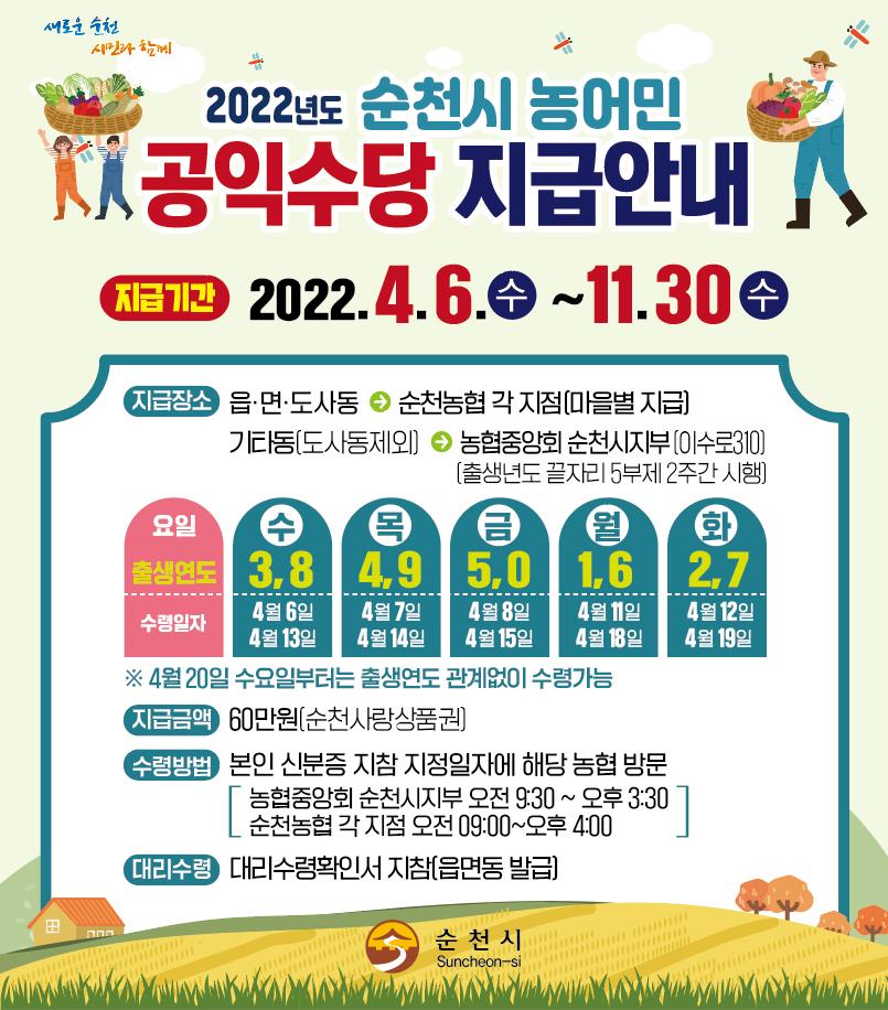 °øÀͼö´ç ¼ö·ÉÀº 4¿ù 6ÀϺÎÅÍ º»ÀÎ ½ÅºÐÁõÀ» ÁöÂüÇÏ¿©, µ¿Áö¿ªÀº Ãâ»ý¿¬µµ¿¡ µû¸¥ 5ºÎÁ¦¿¡ ¸ÂÃç ³óÇùÁß¾Óȸ ¼øÃµ½ÃÁöºÎ¿¡¼ ¹æ¹® ¼ö·ÉÇÒ ¼ö ÀÖÀ¸¸ç, À¾¸éÁö¿ª°ú µµ»çµ¿Àº ¸¶À»º° ÁöÁ¤µÈ ¼ö·É³¯Â¥¿¡ ¸ÂÃç ÁÖ¼ÒÁö ³óÇù¿¡¼ ¹æ¹®¼ö·ÉÇÏ¸é µÈ´Ù.