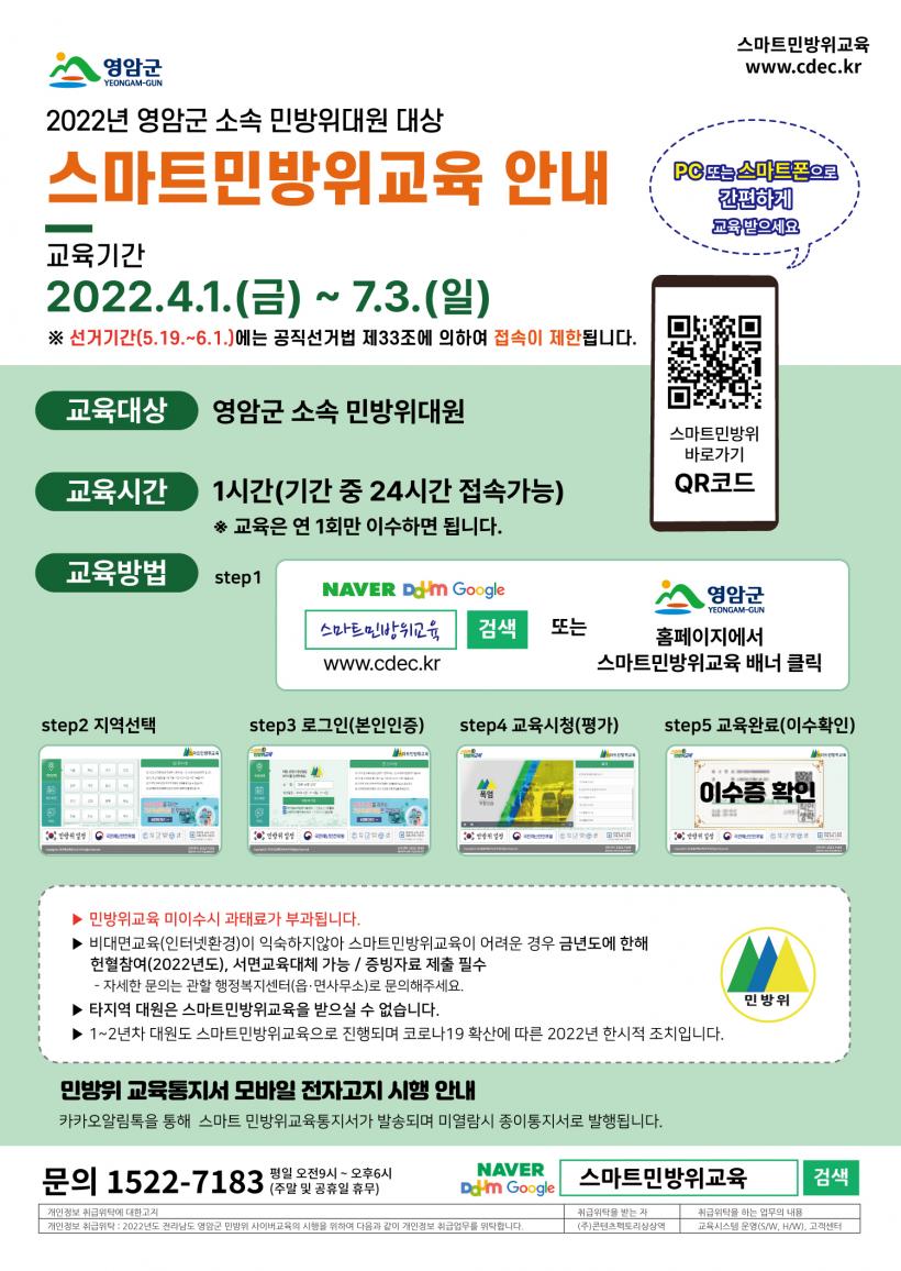 ¼±°Å±â°£ÀÎ 5¿ù 19ÀϺÎÅÍ 6¿ù 1ÀϱîÁö´Â ¡¸°øÁ÷¼±°Å¹ý¡¹Á¦33Á¶¿¡ µû¶ó Á¢¼ÓÀÌ Á¦ÇѵǸç, º» ±³À° ¹ÌÀ̼ö ´ë¿øÀ» À§ÇÏ¿© ÇϹݱ⠺¸Ãæ 1Â÷ ±³À°À» 8¿ù 1ÀϺÎÅÍ 9¿ù 15ÀϱîÁö, º¸Ãæ 2Â÷ ±³À°À» 10¿ù 1ÀϺÎÅÍ 11¿ù 15ÀϱîÁö ±â°£ ³» ½Ç½ÃÇÒ ¿¹Á¤ÀÌ´Ù. 2022³â ¹Î¹æÀ§±³À° ºÒÂü ½Ã °úÅ·á 10¸¸ ¿øÀÌ ºÎ°úµÈ´Ù.