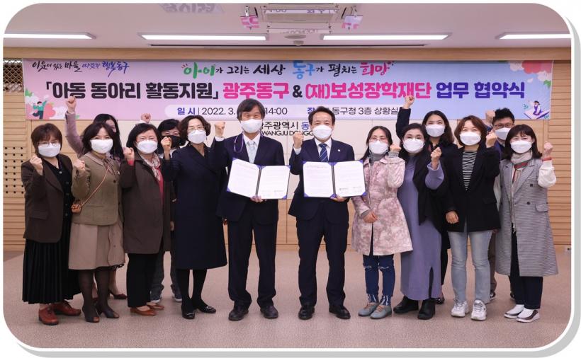 [°ø°£´º½º = ±è´ë¿µ±âÀÚ] ±¤ÁÖ µ¿±¸(±¸Ã»Àå ÀÓÅÃ)´Â Áö³ 3¿ù 31ÀÏ (Àç)º¸¼ºÀåÇÐÀç´Ü°ú ¾Æµ¿ µ¿¾Æ¸® Ȱµ¿ Áö¿øÀ» À§ÇÑ ¾÷¹« Çù¾àÀ» ü°áÇß´Ù°í ¹àÇû´Ù.