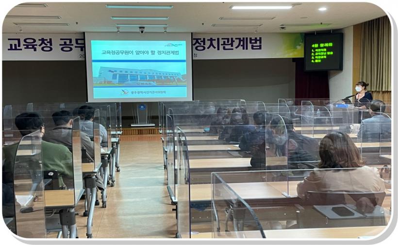 [°ø°£´º½º = ±è¼ö±Ù±âÀÚ] ±¤ÁÖµ¿ºÎ±³À°Áö¿øÃ»ÀÌ Áö³ 1ÀÏ, 6¡¤1 Áö¹æ¼±°Å¸¦ ¾ÕµÎ°í ¸ðµç Á÷¿øÀ» ´ë»óÀ¸·Î ¡®±³À°Ã» °ø¹«¿øÀÌ ¾Ë¾Æ¾ß ÇÒ Á¤Ä¡°ü°è¹ý¡¯ ÁÖÁ¦·Î ±³À°À» ÁøÇàÇß´Ù.