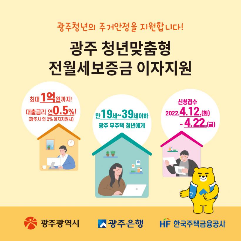 Á¢¼ö´Â 12ÀϺÎÅÍ 22ÀϱîÁö ½Ã û³âÁ¤Ã¥°ü½Ç À̸ÞÀÏ·Î ¹ÞÀ¸¸ç, ½Åû¼·ù´Â ¡®±¤ÁÖû³âÁ¤Ã¥Ç÷§Æû-ÁÖ°Å-ÁְźñÁö¿ø-û³â¸ÂÃãÇü ÁÖÅÃÀÓÂ÷º¸Áõ±Ý ÀÌÀÚÁö¿ø¡¯¿¡¼ ³»·Á¹ÞÀ» ¼ö ÀÖ´Ù.