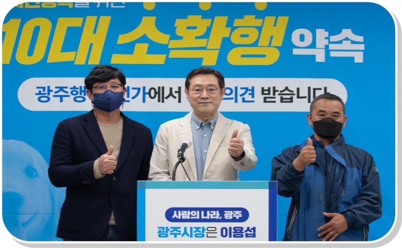 [°ø°£´º½º = ±è¼ö±Ù±âÀÚ] À̿뼷 ±¤ÁÖ±¤¿ª½ÃÀå ¿¹ºñÈ帴 Áö³ 7ÀÏ ¡®´õ Å©°í ´õ °ÇÑ ±¤ÁÖ¡¯ ¿Ï¼ºÀ» À§ÇÑ µÎ ¹øÂ° °ø¾àÀ¸·Î ¡®10´ë ¼ÒÈ®Çà(¼Ò¼ÒÇÏÁö¸¸ È®½ÇÇÑ Çູ)¡¯À» ¹ßÇ¥Çß´Ù.