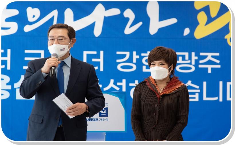 [°ø°£´º½º = ±è¼ö±Ù±âÀÚ] À̿뼷 ±¤ÁÖ±¤¿ª½ÃÀå ¿¹ºñÈ帰¡ ½Ã¹ÎÀÌ À̲ø°í ½Ã¹ÎÀÌ ÁÖÀεǴ ¡®»ç¶÷Ä·ÇÁ¡¯¸¦ Ȱ¦ ¿¾ú´Ù. 9ÀÏ ¼±°Å»ç¹«¼Ò(±¤ÁÖ ¼±¸ Ä¡Æòµ¿ ½ºÅ¸Å¸¿ö) °³¼Ò½Ä¿¡ 5õ¿© ¸íÀÌ Âü¼®ÇØ ÀλêÀÎÇØ¸¦ ÀÌ·ð´Ù.
