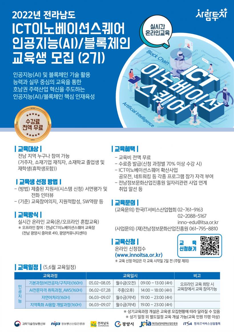 [°ø°£´º½º = ±è´ë¿µ±âÀÚ] ±¤¾ç½Ã°¡ Àü³² Áö¿ª ÀΰøÁö´É(AI)°ú ºí·ÏüÀÎ SW ÀÎÀ縦 ¾ç¼ºÇÏ´Â 2022³â Àü³²ICTÀ̳뺣À̼ǽºÄù¾î 2±â ±³À°»ýÀ» ¸ðÁýÇÑ´Ù°í ¹àÇû´Ù.