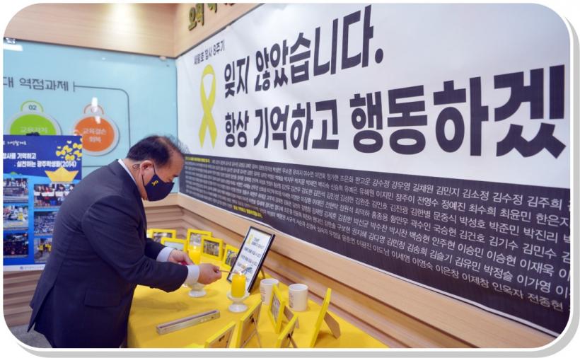 ÀåÈÖ±¹ ±³À°°¨Àº ¡°¼¼¿ùÈ£ Âü»çÀÇ ½Çü´Â ÀØÁö ¾ÊµÇ ±× ±³ÈÆÀ» Åä´ë·Î ¾ÆÀ̵éÀÌ ¾ÈÀüÇϰí ÇູÇÑ ±¤ÁÖ±³À°À» ¾î¶»°Ô ¸¸µé¾î¾ß ÇÏ´ÂÁö °¢ÀÚÀÇ ÀÚ¸®¿¡¼ ²÷ÀÓ¾øÀÌ ¼ºÂûÇϰí, ÇÔ²² ½ÇÃµÇØ ³ª°¡ÀÚ¡±¸ç ¡°¼¼¿ùÈ£ ¿µ·Éµé°ú ¼¼¿ùÈ£ ±¸Á¶ Ȱµ¿ Áß Èñ»ýµÇ½Å ¸ðµç ºÐµéÀÇ ¾È½ÄÀ» ±â¿øÇÑ´Ù¡±°í ¸»Çß´Ù.