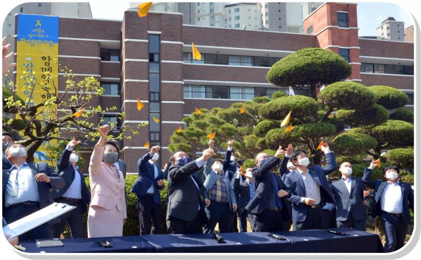 À̳¯ Çà»ç¿¡´Â ÀåÈÖ±¹ ±³À°°¨, ±èȯ½Ä ºÎ±³À°°¨À» Æ÷ÇÔÇÑ ±¹¡¤°úÀå, ¹ÎÁֽùα³À°°ú Á÷¿ø µî 40¿© ¸íÀÌ Âü¿©Çß´Ù. Çà»ç´Â ¼¼¿ùÈ£ Èñ»ýÀÚ¿¡ ´ëÇÑ ¹¬³ä, ¡®¹Ì¾ÈÇØ¿ä ±â¾ïÇҰԿ䡯 µ¿¿µ»ó ½Ãû, Ã߸ð»ç, ¾ÈÀüÇÑ ¼¼»óÀ» ¸¸µé°Ú´Ù´Â ¾à¼ÓÀ» ´ãÀº ³ë¶õ Á¾À̺ñÇà±â ³¯¸®±â µîÀÇ ¼øÀ¸·Î ÁøÇàµÆ´Ù.
