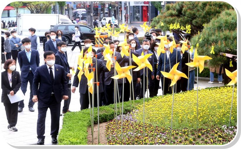 [°ø°£´º½º = ±è´ë¿µ±âÀÚ] ±¤Áֽà ºÏ±¸(±¸Ã»Àå ¹®ÀÎ)´Â 4・16 ¼¼¿ùÈ£ Âü»ç 8Áֱ⸦ ¸Â¾Æ Èñ»ýÀÚ¸¦ Ã߸ðÇÏ°í »ý¸í°ú ÀαÇÀÇ Àǹ̸¦ µÇ»õ±â°íÀÚ ¿À´Â 17ÀϱîÁö Ã߸ð ÁÖ°£À» ¿î¿µÇÑ´Ù.