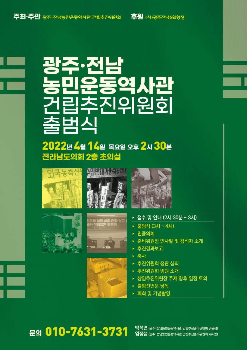 [°ø°£´º½º = ±è¼ö±Ù±âÀÚ] ±¤ÁÖ¡¤Àü³²Áö¿ª ³ó¹Î¿îµ¿ÀÇ ¿ª»çÀû ÀÇ¹Ì¿Í ¶æÀ» °è½Â¡¤º¸Á¸Çϱâ À§ÇÑ ±¤ÁÖ¡¤Àü³² ³ó¹Î¿îµ¿¿ª»ç°ü °Ç¸³»ç¾÷ÀÌ º»°ÝÈ µÈ´Ù.