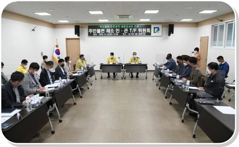 [°ø°£´º½º = ±è¼ö±Ù±âÀÚ] ±¤ÁÖ ³²±¸°¡ ¹é¿î±¤Àå ÁÖº¯Áö¿ª ´ëÇü °ø»ç·Î ÀÎÇÑ °¢Á¾ ºÒÆí ÃÖ¼Òȸ¦ À§ÇØ ¡®ÁÖ¹ÎºÒÆí ÇØ¼Ò ¹Î‧°ü TFÆÀ¡¯À» ±¸¼ºÇÏ´Â µî Àû±ØÀûÀÎ ´ëÀÀ¿¡ ³ª¼¹´Ù.