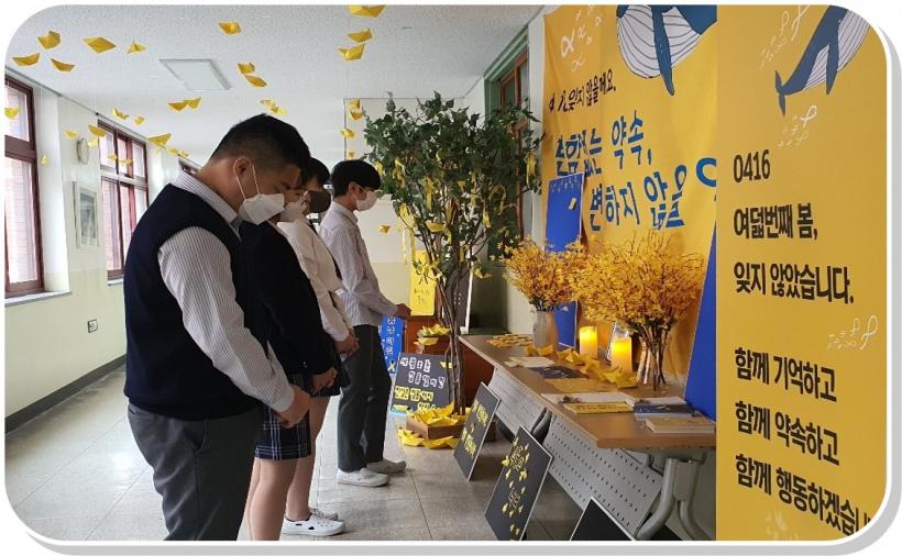 Àϵ¿ÁßÇб³ ±è¿ëÁÖ ±³ÀåÀº ¡°Çлýȸ ÁÖ°üÀ¸·Î Á¤¼ºÀ» ´ÙÇØ ½Ç½ÃÇÑ À̹ø ¼¼¿ùÈ£ Èñ»ýÀÚ 8ÁÖ±â Ã߸ðÇà»ç¸¦ ÅëÇØ, Èñ»ýµÈ ÇлýµéÀ» ÀØÁö ¾Ê°Ú´Ù´Â ¿ì¸® ÇлýµéÀǸ¶À½À» ´Ù½Ã Çѹø ´À³¥ ¼ö ÀÖ¾ú´Ù¡±¸ç ¡°¶Ç À̹ø Çà»ç¸¦ ¾ÈÀüÇÑ Çб³¸¦ ¸¸µé±â À§ÇÑ °è±â·Î »ï¾Æ ¸ðµÎ°¡ ÇÔ²² ¾ÈÀüÇÑ Çб³¸¦ ¸¸µé±â À§ÇØ ³ë·ÂÇϰڴ١±°í ¹àÇû´Ù.