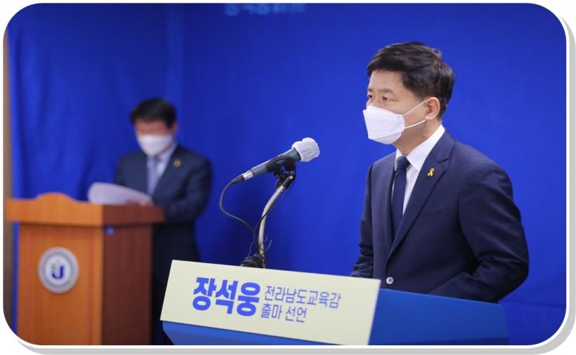 [°ø°£´º½º = ±è¼ö±Ù±âÀÚ] Àå¼®¿õ Àü³²±³À°°¨ÀÌ 18ÀÏ ¿ÀÀü Àü³²µµ±³À°Ã» ÁöÇÏ 1Ãþ ÁßȸÀǽǿ¡¼ ±âÀÚȸ°ßÀ» ¿°í Àç¼± Ã⸶¸¦ °ø½Ä ¼±¾ðÇß´Ù.