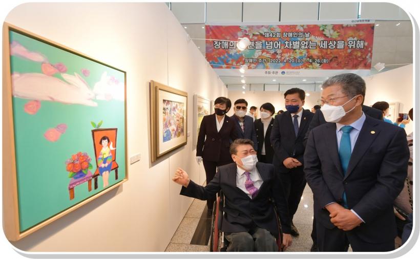 [°ø°£´º½º = ±è¼ö±Ù±âÀÚ] ±¤ÁÖ ¼±¸(¼´ë¼® ¼±¸Ã»Àå)°¡ 20ÀÏ Á¦42ȸ ¡®Àå¾ÖÀÎÀÇ ³¯¡¯À» ¸Â¾Æ ÁßÁõ ÁִϾî Àå¾ÖÀÎÀ» À§ÇÑ ÈÙü¾î¸¦ ÈÄ¿ø¹Þ¾Æ Àü´ÞÇϰí Àå¾ÖÀÎ ¿¹¼ú°¡µéÀ» ÃÊûÇÏ¿© ±×¸² ÀÛǰ Àü½Ãȸ¿Í Á÷¿ø ´ë»ó Àå¾ÖÀÎ Àνݳ¼± ±³À°À» ½Ç½ÃÇß´Ù.