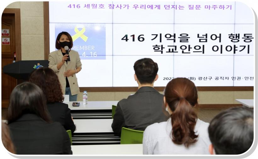 ±¤»ê±¸´Â Áö³ 26ÀÏ ±¸Ã» 2Ãþ »óȲ½Ç¿¡¼ ¡®4.16 ±â¾ïÀ» ³Ñ¾î ÇൿÇÏ´Â Çб³ ¾ÈÀÇ À̾߱⡯¸¦ ÁÖÁ¦·Î °øÁ÷ÀÚ ÀαÇ‧¾ÈÀü ±³À°À» ÁøÇàÇß´Ù.