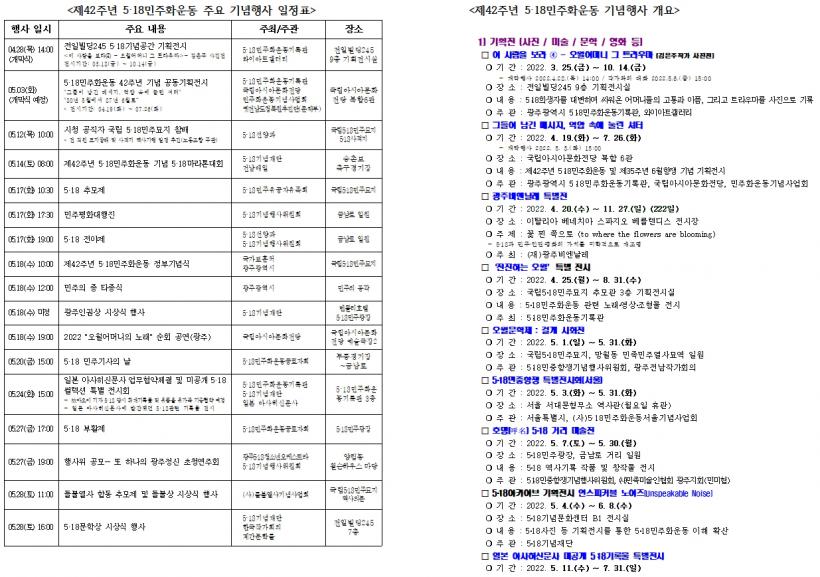 42Áֳ⠱â³ä ÇмúÇà»çµµ ÁøÇàµÈ´Ù. 18ÀϺÎÅÍ 21ÀϱîÁö ±è´ëÁßÄÁº¥¼Ç¼¾ÅÍ¿¡¼´Â 5¡¤18±â³äÀç´Ü ÁÖ°üÀ¸·Î ±¹³»¿Ü ¹ÎÁÖ¡¤Àαǡ¤ÆòÈ Àü¹®°¡¿Í ½Ã¹Î, Çлý µîÀÌ Âü¿©ÇÏ´Â ¡®2022 ±¤ÁÖ¹ÎÁÖÆ÷·³¡¯ÀÌ ¿¸°´Ù. ¹ÎÁÖÁÖÀÇ¿Í À뱂 ÁõÁø ¿¬´ë¸¦ ÅëÇÑ 5¡¤18ÀÇ ¼¼°èÈ¿¡ ´ëÇØ ³íÀÇÇÒ ¿¹Á¤ÀÌ´Ù.