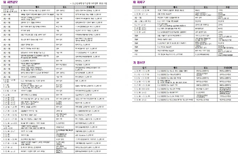 ƯÈ÷, Çà»çÀ§´Â ÀÚÄ¡±¸º° û¼Ò³â¹®ÈÀÇÁý, ¼ö·Ã½Ã¼³ µî û¼Ò³âÀÌ ÁÖü°¡ µÇ´Â 5¡¤18±â³äÇà»ç¸¦ È®´ëÇß´Ù.