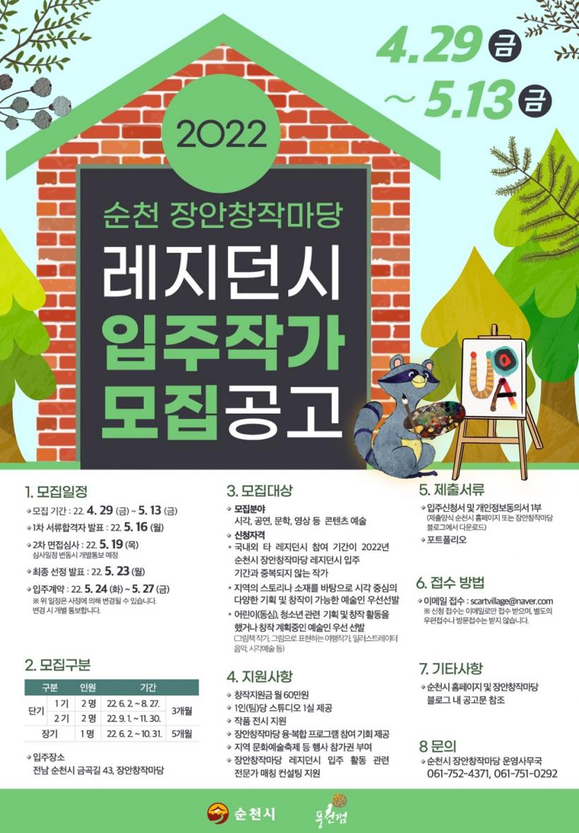 [°ø°£´º½º = ±è´ë¿µ±âÀÚ] ¼øÃµ½Ã´Â Áö¿ª¹Î°ú È£ÈíÇϸç âÀÛÀÇ ²ÉÀ» ÇÇ¿ï ¡®2022 ¼øÃµ Àå¾ÈâÀÛ¸¶´ç ·¹Áö´ø½Ã ÀÔÁÖÀÛ°¡¡¯¸¦ ¿À´Â 13ÀϱîÁö °ø°³ ¸ðÁýÇÑ´Ù.