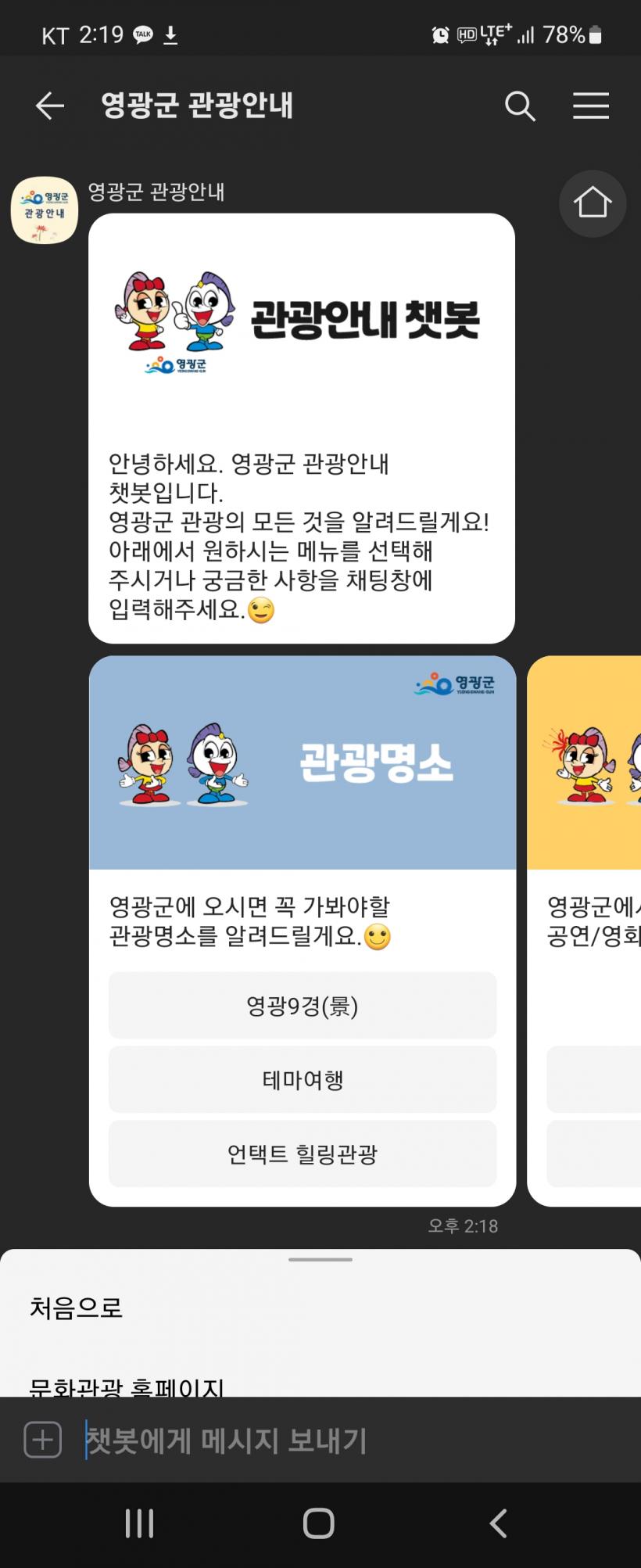 꺿Àº īī¿ÀÅå¿¡¼ ¡®¿µ±¤±º °ü±¤¾È³»¡¯Ã¤³ÎÀ» °Ë»öÇÏ¿© Ä£±¸ Ãß°¡ Çϰųª ¿µ±¤±º ¹®È°ü±¤ ȨÆäÀÌÁö(https://tour.yeonggwang.go.kr/)¸¦ ÅëÇØ¼ ÀÌ¿ëÀÌ °¡´ÉÇÏ´Ù.